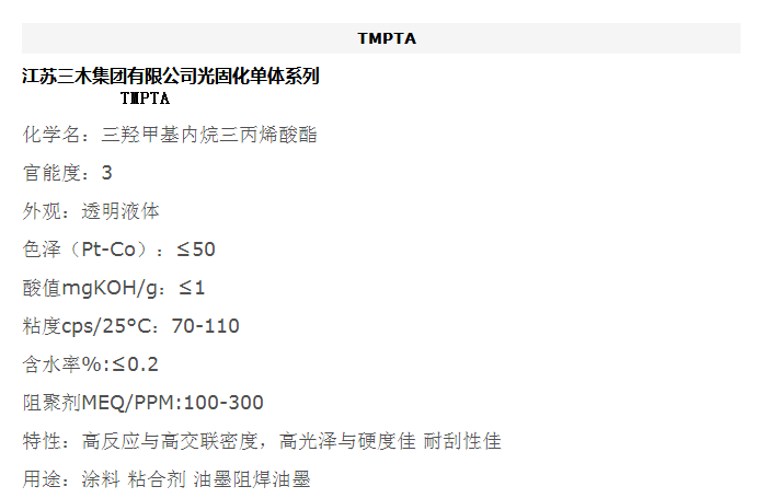 江苏三木 光固化单体系列 TMPTA