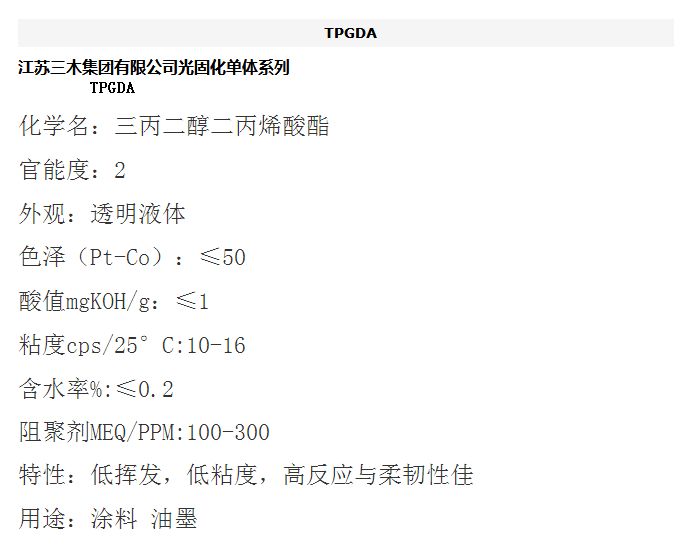 江苏三木 光固化单体系列 TPGDA