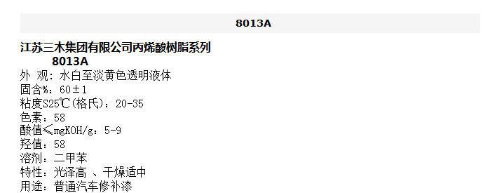江苏三木 丙烯酸树脂系列 8013A