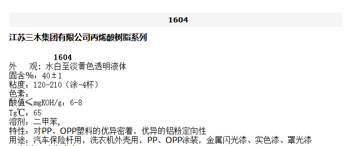 江苏三木 丙烯酸树脂系列 1604