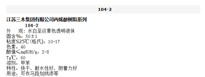 江苏三木 丙烯酸树脂系列 104-2