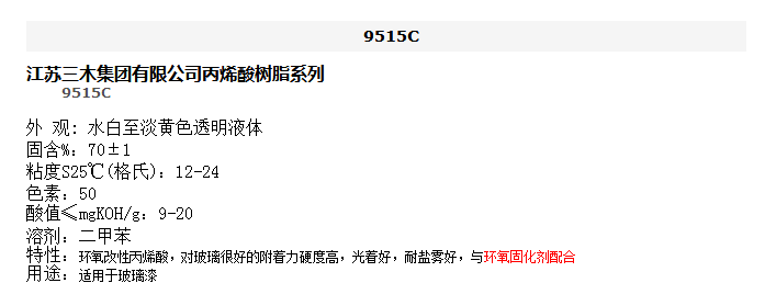 江苏三木 丙烯酸树脂系列 9515C