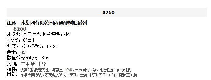江苏三木 丙烯酸树脂系列 8260