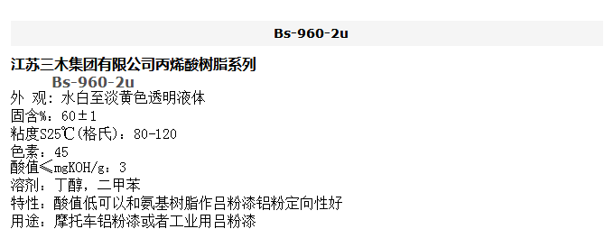 江苏三木 丙烯酸树脂系列 Bs-960-2u