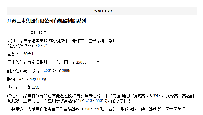 江苏 三木 有机硅树脂系列 SM1127