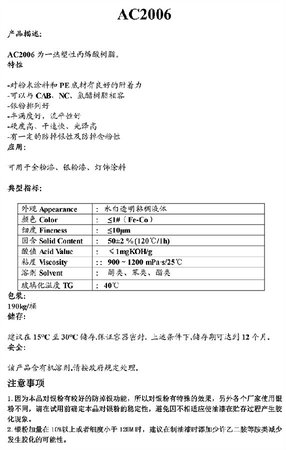 加拿大 能达 AC2006热塑性丙烯酸树脂