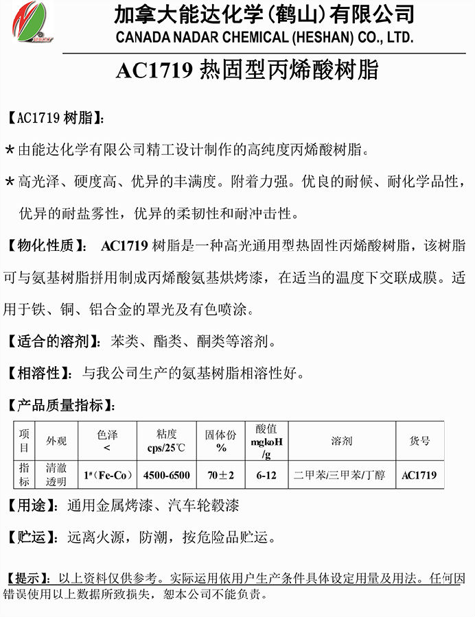 加拿大 能达 AC1719热固型丙烯酸树脂