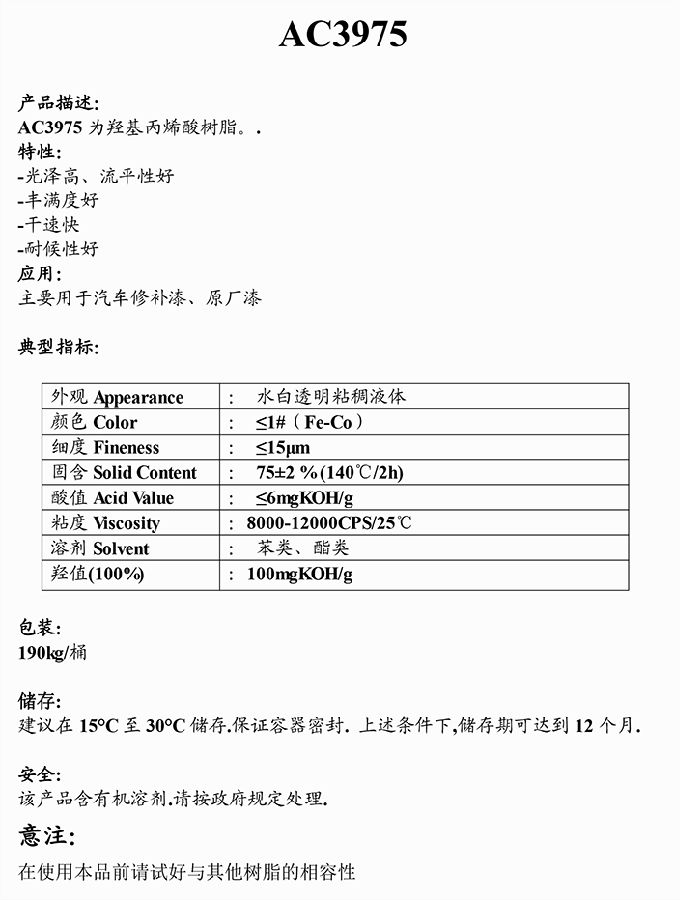加拿大 能达 AC3975羟基丙烯酸树脂