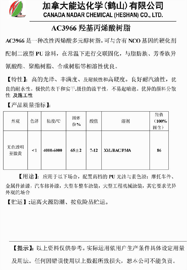 加拿大 能达 AC3966羟基丙烯酸树脂