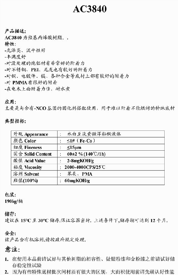 加拿大 能达 AC3840羟基丙烯酸树脂