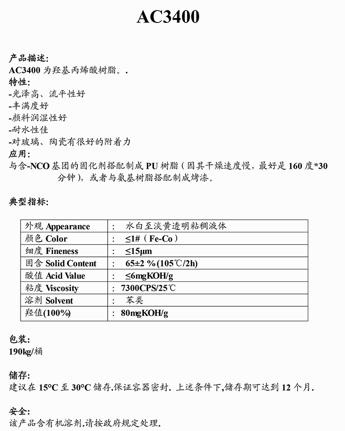 加拿大 能达 AC3400羟基丙烯酸树脂