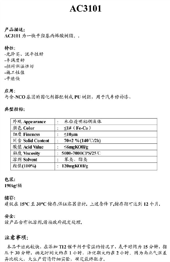 加拿大 能达 AC3101快干羟基丙烯酸树脂