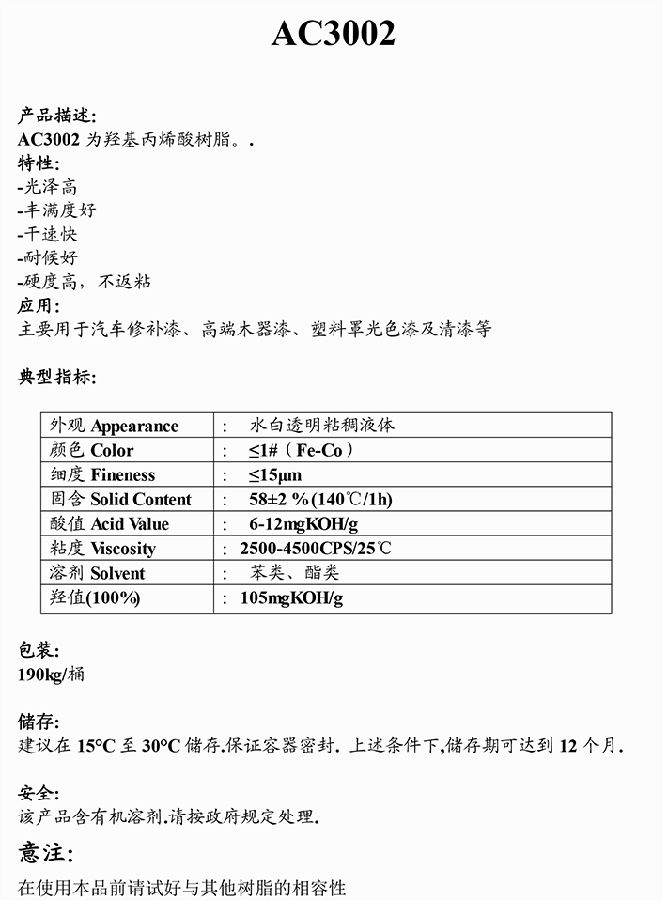 加拿大 能达 AC3002羟基丙烯酸树脂