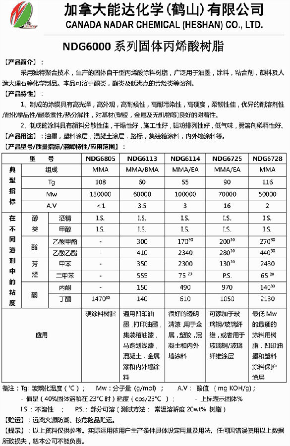 加拿大 能达 NDG6000系列固体丙烯酸树脂