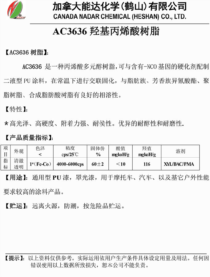 加拿大 能达 AC3636羟基丙烯酸树脂