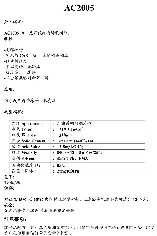加拿大 能达 AC2005低羟基丙烯酸树脂
