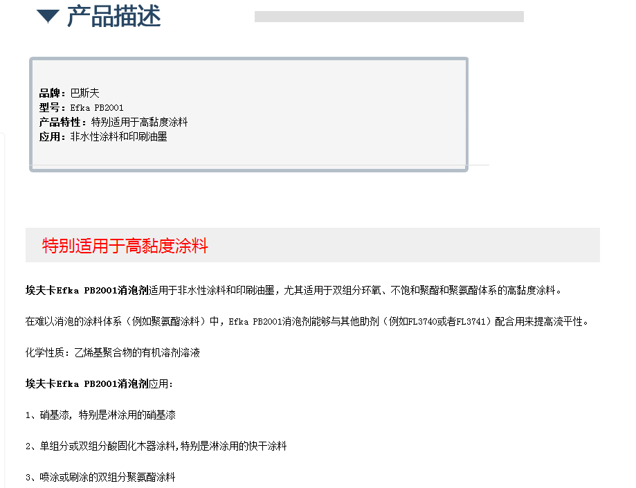 德国巴斯夫埃夫卡Efka PB2001消泡剂