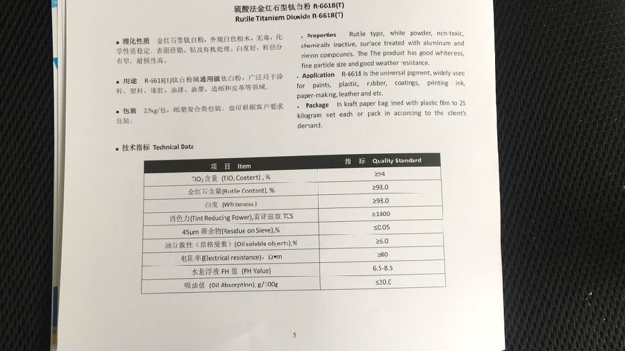 天泰 钛白粉 硫酸法金红石型钛白粉 R-6618(T)