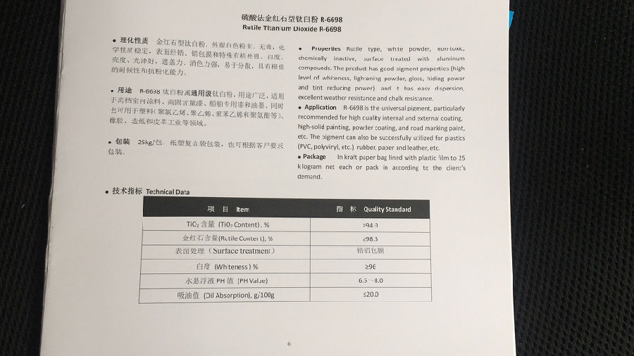 天泰 钛白粉 硫酸法金红石型钛白粉 R-6698