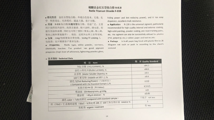 天泰 钛白粉 硫酸法金红石型钛白粉 R-818