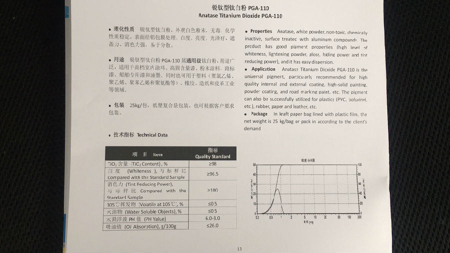 天泰 钛白粉 锐钛型钛白粉 PGA-110