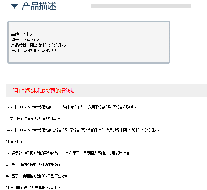 德国巴斯夫埃夫卡Efka SI2022消泡剂