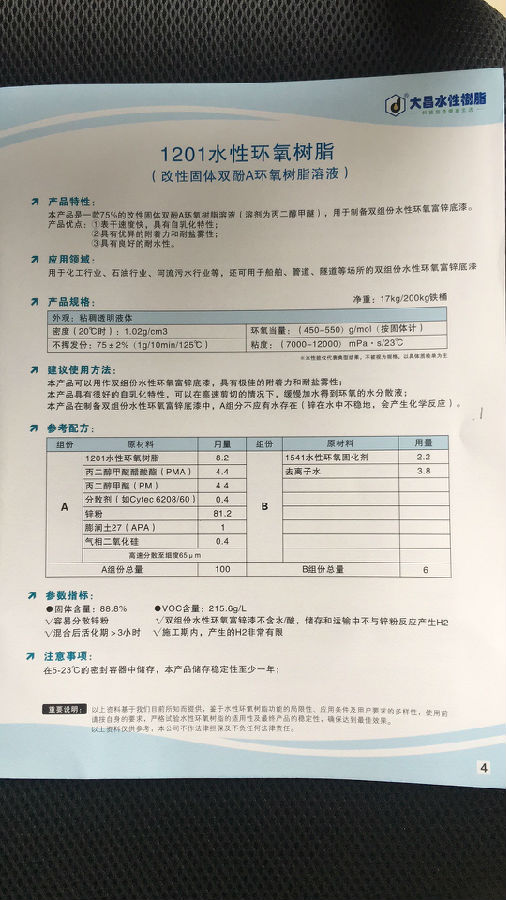 大昌水性树脂 1201水性环氧树脂(改性固体双酚A环氧树脂溶液)