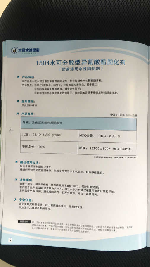 大昌水性树脂 1504水可分散型异氰酸酯固化剂(防腐漆用水性固化剂)