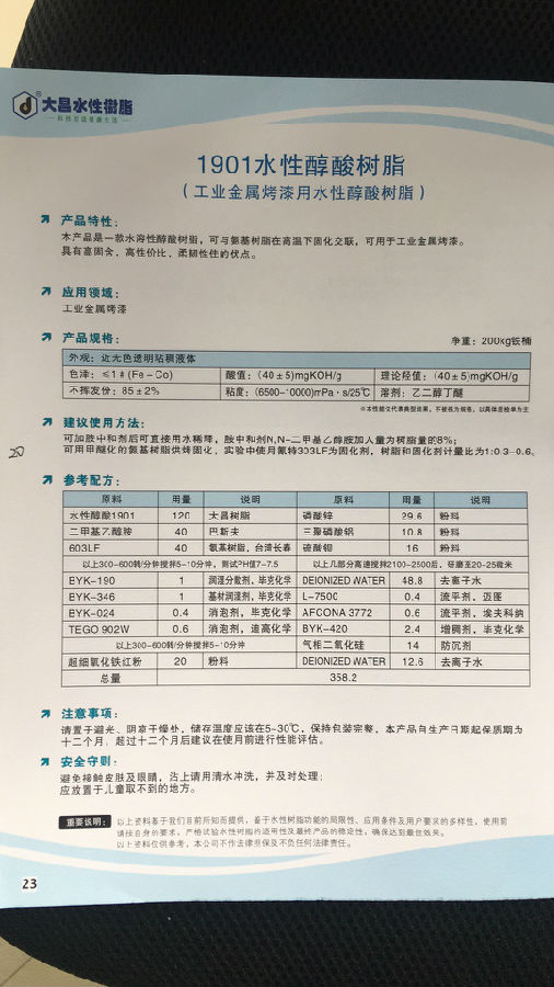 大昌水性树脂 1901水性丙烯酸乳液(工业金属烤漆用水性醇酸树脂)
