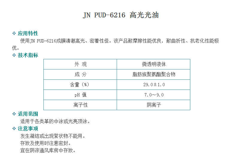 广州骏能化工 水性聚氨酯乳液 JN PUD-6216 高光光油