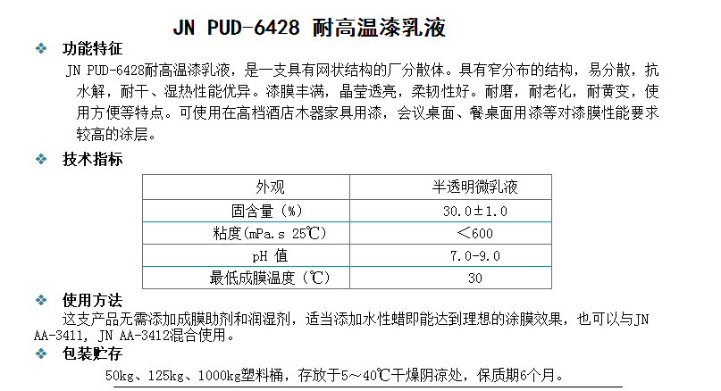 广州骏能化工 水性聚氨酯乳液 JN PUD-6428 耐高温漆乳液
