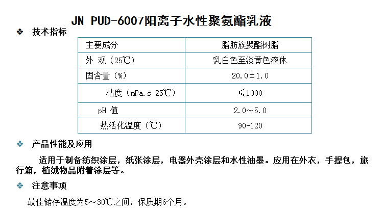 广州骏能化工 水性聚氨酯乳液 JN PUD-6007阳离子水性聚氨酯乳液