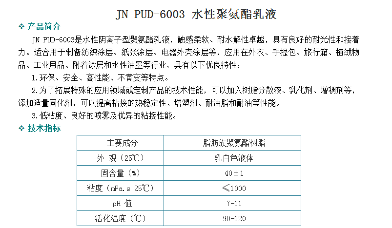 广州骏能化工 水性聚氨酯乳液 JN PUD-6003 水性聚氨酯乳液