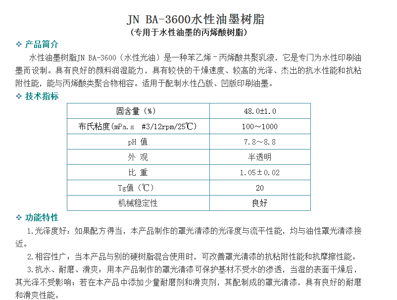 广州骏能化工 丙烯酸乳液 JN BA-3600水性油墨树脂