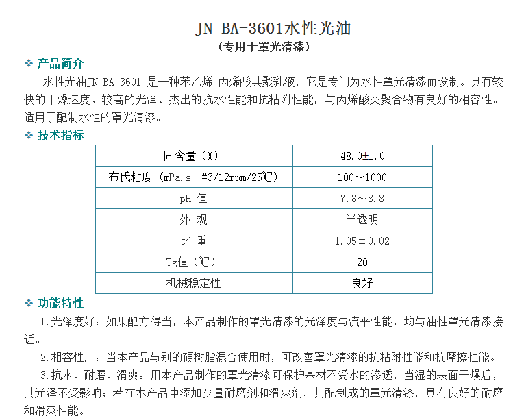 广州骏能化工 丙烯酸乳液 JN BA-3601水性光油 (专用于罩光清漆)