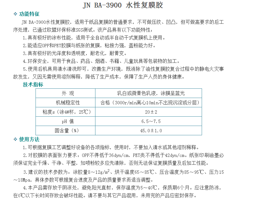 广州骏能化工 丙烯酸乳液 JN BA-3900 水性复膜胶