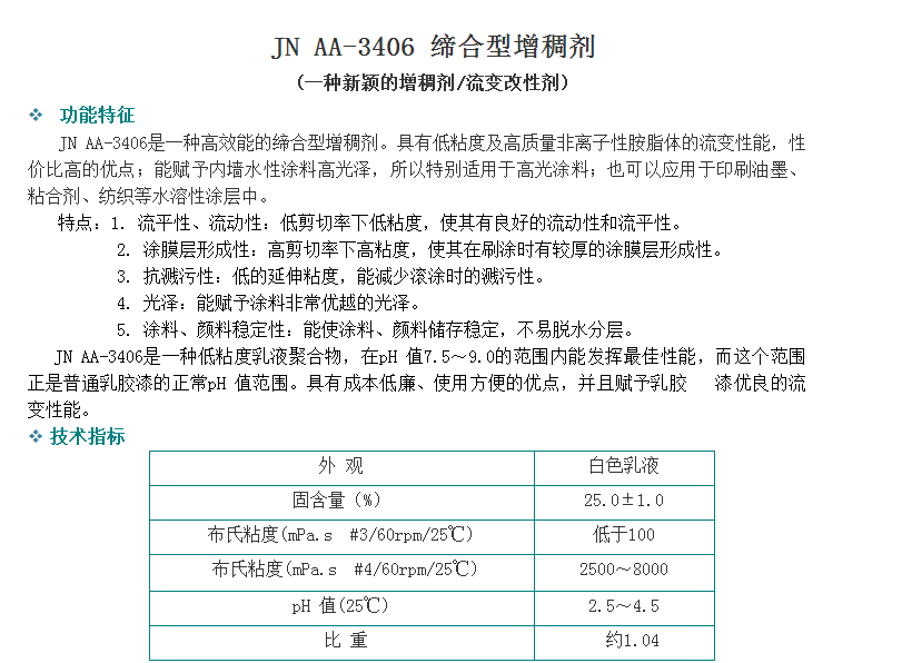 广州骏能化工 丙烯酸乳液 JN AA-3406 缔合型增稠剂 (一种新颖的增稠剂/流变改性剂)