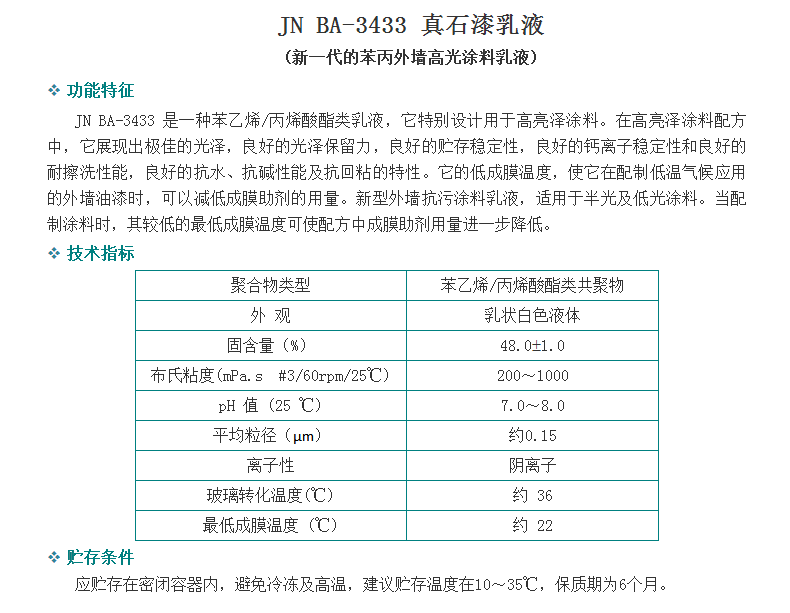 广州骏能化工 丙烯酸乳液 JN BA-3433 真石漆乳液 (新一代的苯丙外墙高光涂料乳液)