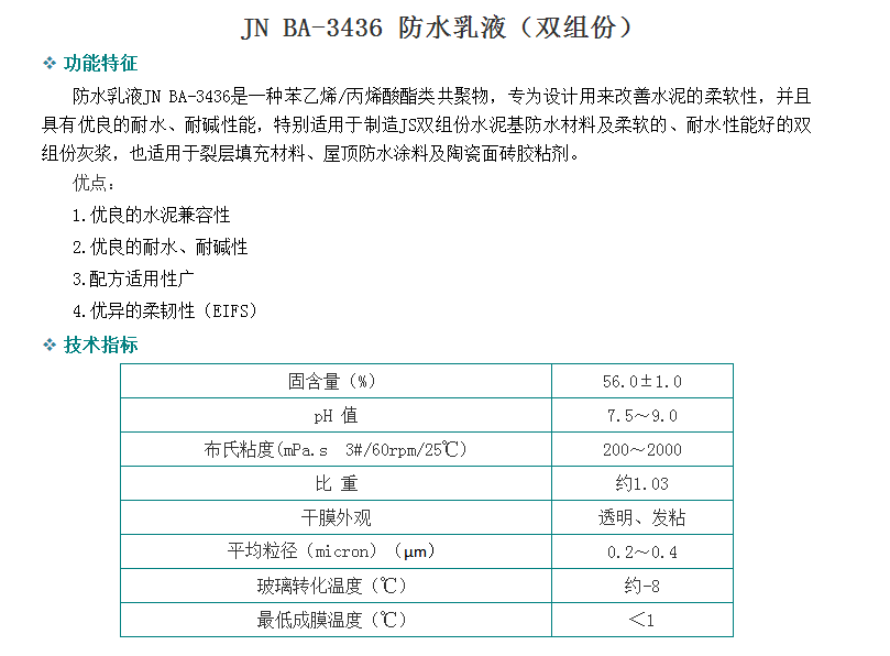 广州骏能化工 丙烯酸乳液 JN BA-3436 防水乳液(双组份)