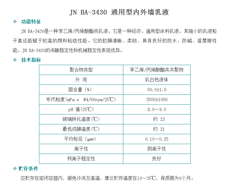 广州骏能化工 丙烯酸乳液 JN BA-3430 通用型内外墙乳液