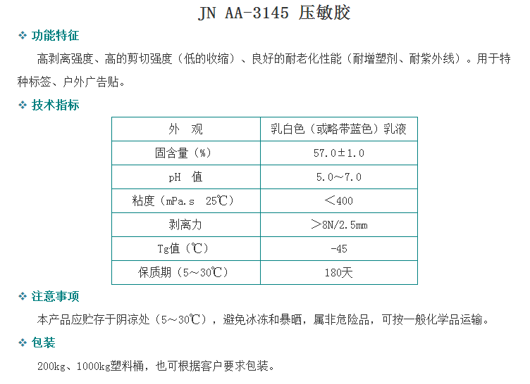广州骏能化工 丙烯酸乳液 JN AA-3145 压敏胶