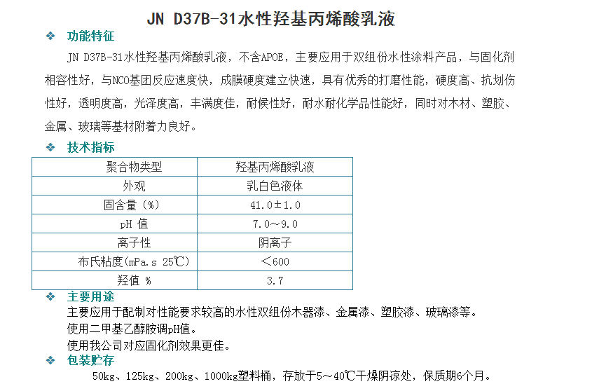 广州骏能化工 丙烯酸乳液 JN D37B-31水性羟基丙烯酸乳液
