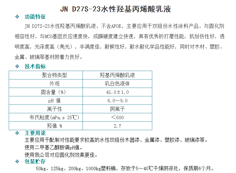 广州骏能化工 丙烯酸乳液 JN D27S-23水性羟基丙烯酸乳液