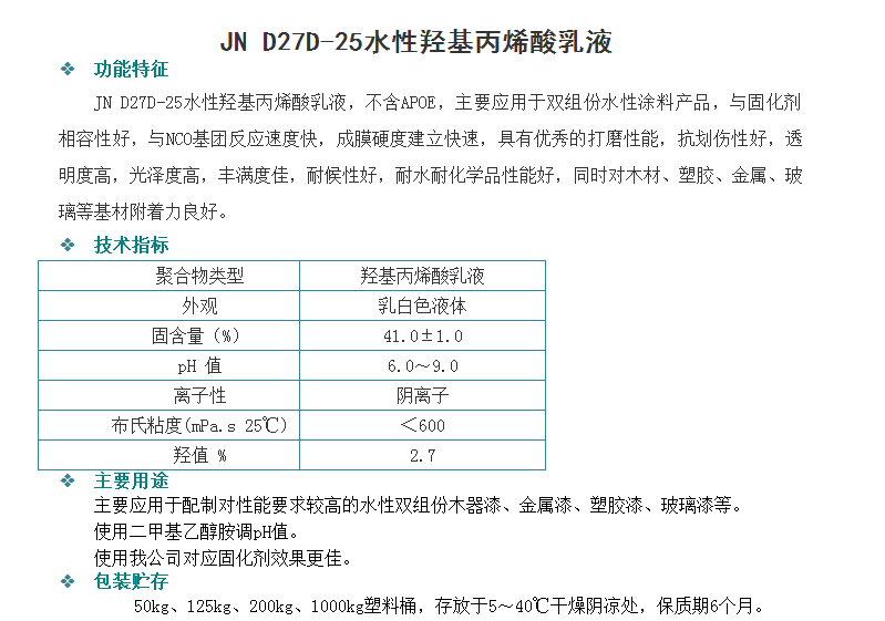 广州骏能化工 丙烯酸乳液 JN D27D-25水性羟基丙烯酸乳液