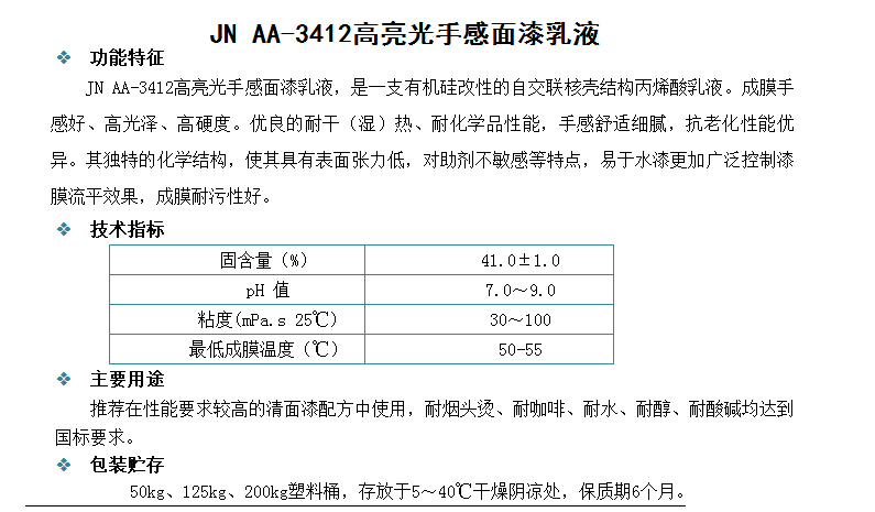 广州骏能化工 丙烯酸乳液 JN AA-3412高亮光手感面漆乳液