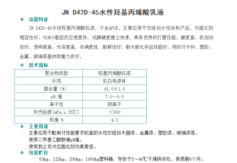广州骏能化工 丙烯酸乳液 JN D42D-45水性羟基丙烯酸乳液