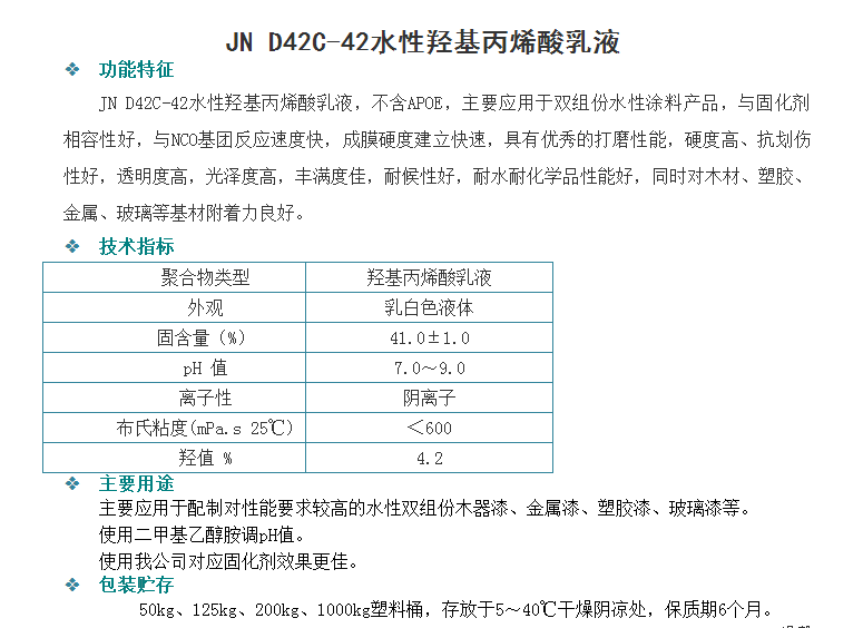 广州骏能化工 丙烯酸乳液 JN D42C-42水性羟基丙烯酸乳液