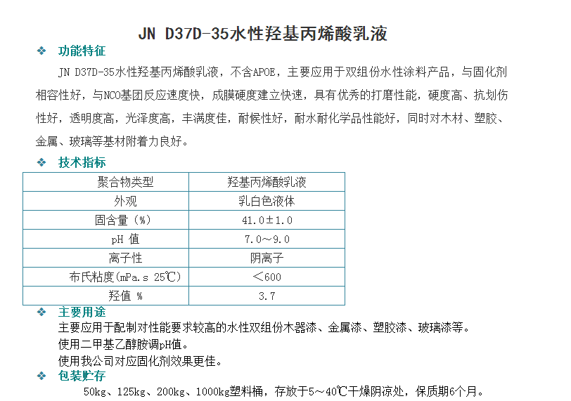 广州骏能化工 丙烯酸乳液 JN D37D-35水性羟基丙烯酸乳液