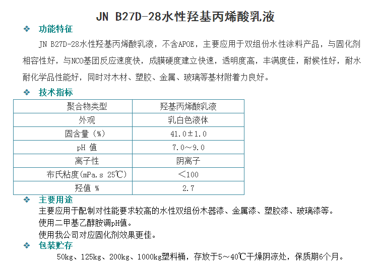 广州骏能化工 丙烯酸乳液 JN B27D-28水性羟基丙烯酸乳液