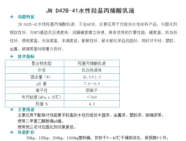 广州骏能化工 丙烯酸乳液 JN D42B-41水性羟基丙烯酸乳液